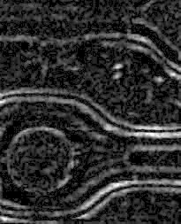 Note how after the erosion steps the smaller bright spots are eliminated even after dilation. After subtraction the smaller spots are back but the larger areas have been removed. There is much to experiment with here in terms of the number and order of erosions and dilations. This is a very powerfull size discrimiator methodology. Contrast these results with the larger example in ip_2_3_3_difference.html.